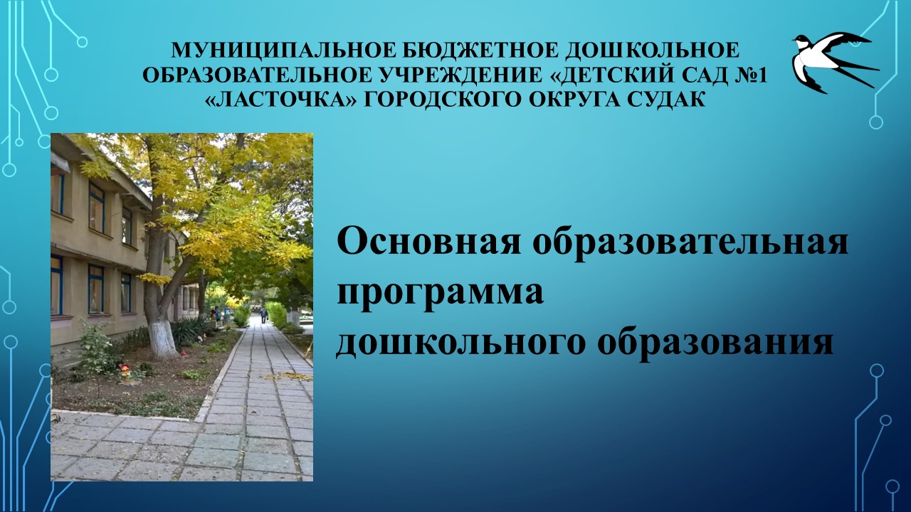 | Образовательная программа дошкольного образования муниципального бюджетного дошкольного образовательного учреждения «Детский сад №1 «Ласточка» городского округа Судак (в соответствии с требованиями ФГОС ДО и ФОП ДО) Форма обучения: очная (группы полного дня с 07:30 до 18:00). Нормативный срок обучения: от 2 лет до прекращения образовательных отношений, но не позднее достижения ребёнком 8 лет. Срок действия государственной аккредитации: не предусмотрено. Язык, на котором ведётся обучение: русский. Уровень образования: дошкольное. Наименование профессии, специальности, направления подготовки: ориентирована на детей дошкольного возраста 2-8 лет. · АООП ДО для детей дошкольного возраста с расстройствами аутистического спектра (РАС) · АООП ДО для детей с задержкой психического развития (ЗПР) · АООП ДО для детей дошкольного возраста с нарушением опорно – двигательного аппарата |