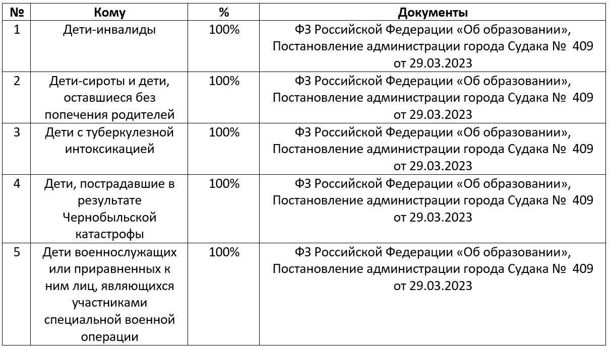Предусмотрена компенсация в размере, который устанавливается нормативными правовыми актами субъекта РФ, но не менее 20% среднего размера родительской платы на первого ребёнка, не менее 50% на второго, не менее 70% на третьего и последующего детей.